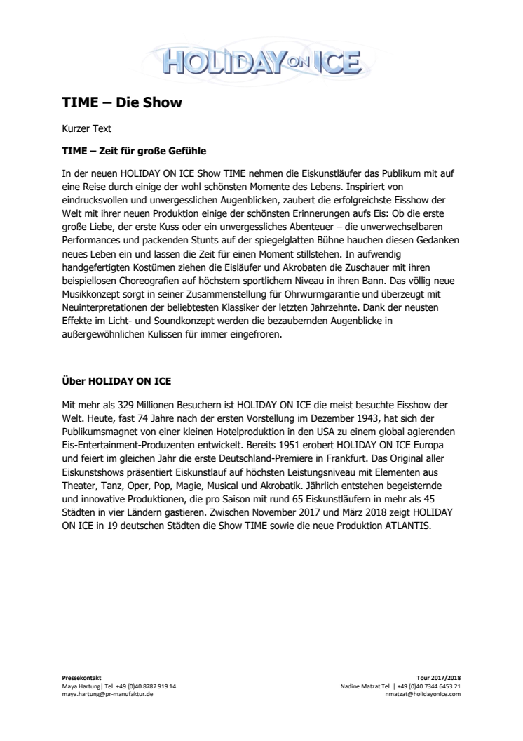 In der neuen HOLIDAY ON ICE Show TIME nehmen die Eiskunstläufer das Publikum mit auf eine Reise durch einige der wohl schönsten Momente des Lebens.
