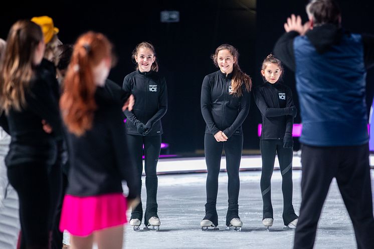 Die HOLIDAY ON ICE ACADEMY Nachwuchstalente mit Robin Cousins bei den Vorbereitungen auf Dancing on Ice