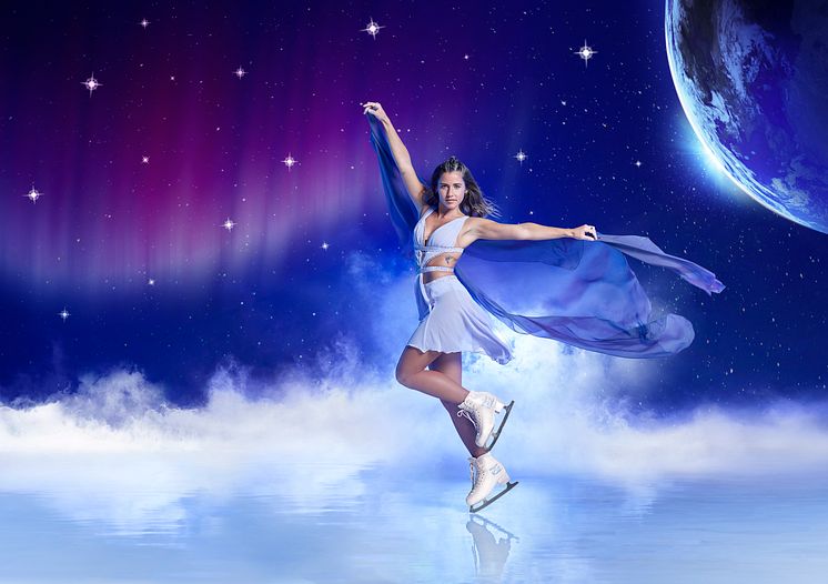 Sarah Lombardi taucht ein in die Welt von HOLIDAY ON ICE: In der neuen Show SUPERNOVA reist sie von der Erde zu den Sternen. Für ihr erstes Foto in der neuen Showwelt trägt sie ihr Lieblingskostüm von „Dancing on Ice“.