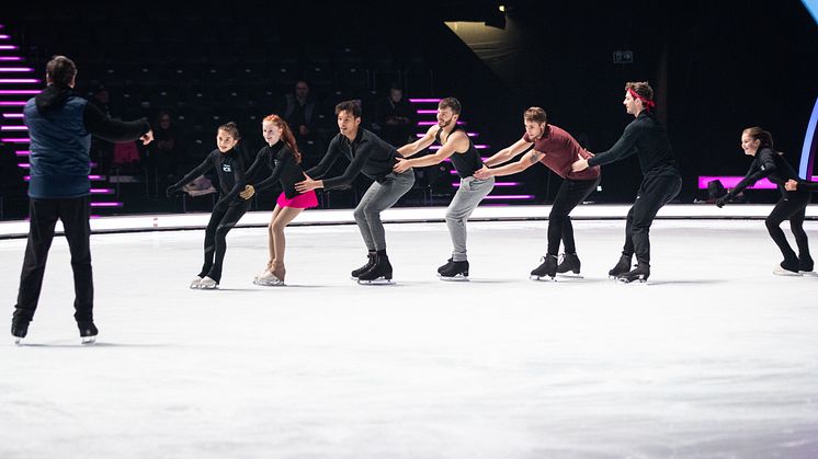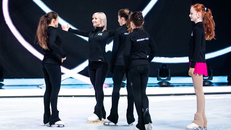 „Ich kann es immer noch nicht glauben, dass wir nicht nur bei HOLIDAY ON ICE, sondern nun auch bei „Dancing on Ice“ auftreten dürfen. Die letzten Wochen haben wir alle viel trainiert und ich freue mich sehr, dass wir vier gemeinsam auf die Bühne gehen und Aljona an unserer Seite ist. Das hilft etwas bei der Aufregung“, erzählt die 13-jährige Carolina Raabe aus Hamburg. Alle vier Talente haben sich bereits beim Sommercamp der ACADEMY im August in Köln kennengelernt. Heute trafen sie sich wieder, um gemeinsam die Performance für den Live-Auftritt im TV zu trainieren und ihre neue Choreografie zu üben. Diese wird eigens für den Auftritt am Nikolaustag von Robin Cousins kreiert. Der Creative Director der HOLIDAY ON ICE Show SUPERNOVA sowie Choreograf von SHOWTIME ist in diesem Jahr auch der Choreograf der Küren bei „Dancing on Ice“. Die TV-Performance ist eine neue Herausforderung für die Talente: Die Läuferinnen haben sich bisher auf Einzelauftritte spezialisiert und müssen nun als Gruppe erstmals eine harmonische Einheit auf dem Eis bilden. „Die ersten Proben haben mir bereits gezeigt, dass wir hier wirklich vier herausragende Talente haben. Ihre Motivation und Leidenschaft sind ansteckend und ich bin mir sicher, dass sie das Publikum mit ihrem ersten gemeinsamen Auftritt begeistern werden“, freut sich Robin Cousins, der ebenfalls als Einzelläufer international erfolgreich war und sich unter anderem 1980 die olympische Goldmedaille sicherte.