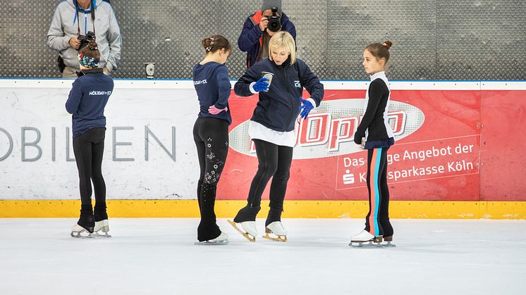 Zurück auf dem Eis geht es weiter mit dem Training der einzelnen Elemente wie Doppel-Lutz, Rittberger oder Spiralen und dem publikumsreifen Auftritt auf der Showbühne. Aljona Savchenko und Bruno Massot nehmen das Können der Nachwuchsläufer unter die Lupe und feilen mit ihnen an künstlerischer und technischer Perfektion: hier den Arm noch etwas höher, da den Rücken gerader. „Die nächste Belohnung für das intensive Training erwartet sie bei den HOLIDAY ON ICE Shows, wenn sie auf der Eisbühne stehen und nach ihrem Auftritt den Applaus vom Publikum bekommen, das berührt einen wirklich sehr und gibt einem so viel Energie,“ weiß Bruno Massot, der im vergangenen Jahr selbst auf der HOLIDAY ON ICE Bühne mit Aljona Savchenko die Zuschauer begeisterte.