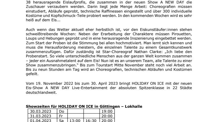 PROBENSTART FÜR HOLIDAY ON ICE – A NEW DAY bald in Göttingen