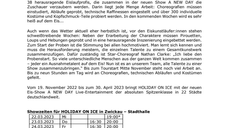 PROBENSTART FÜR HOLIDAY ON ICE – A NEW DAY bald in Zwickau
