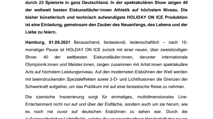 • Pressemitteilung Holiday On Ice - A NEW DAY