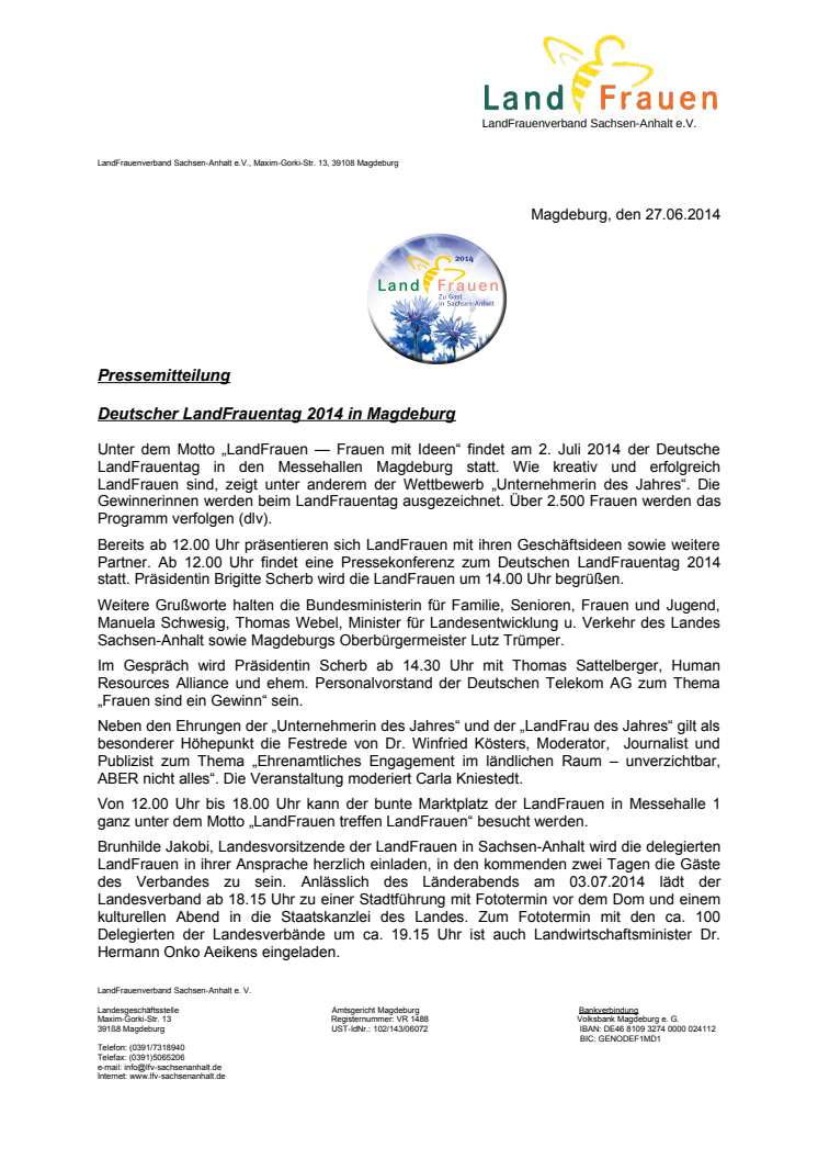 Deutscher LandFrauentag 2014 in Magdeburg - zu Gast in Sachsen-Anhalt
