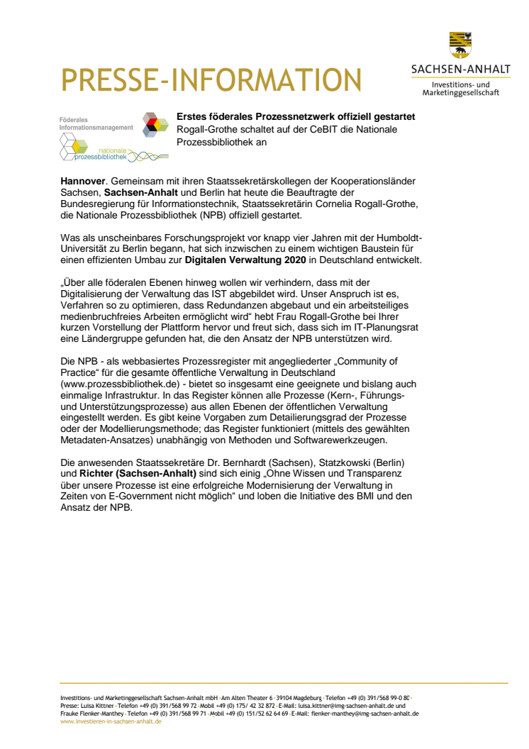 Staatssekretärin Rogall-Grothe schaltet auf der CeBIT die Nationale Prozessbibliothek an.