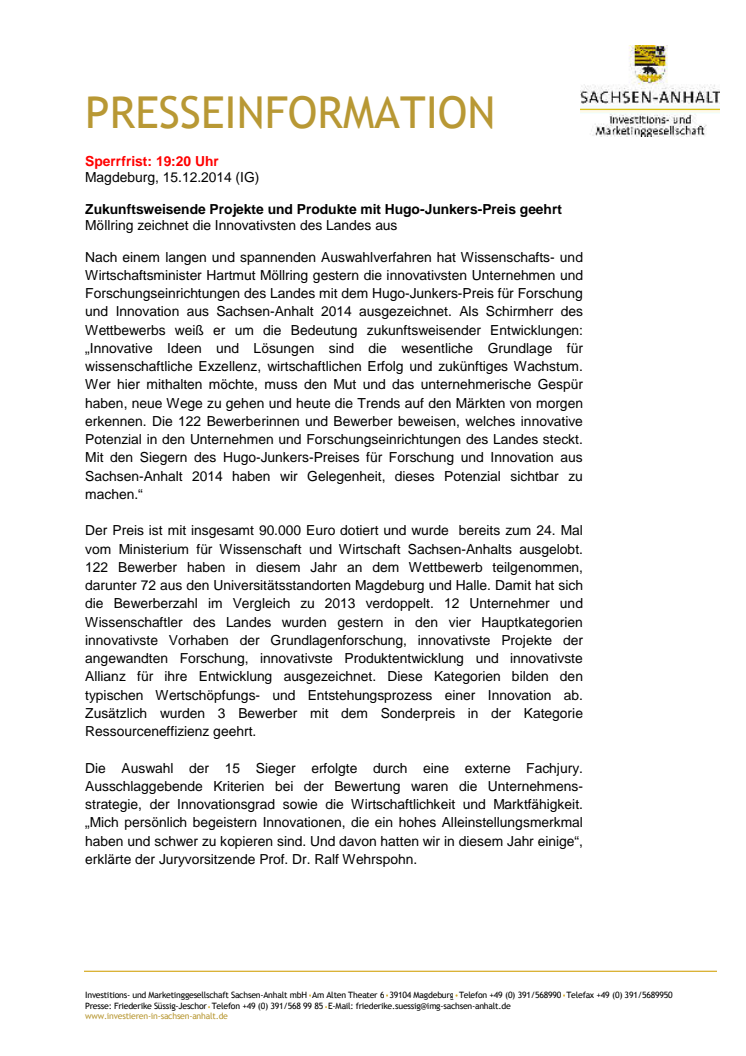 zukunftsweisende Projekte und Produkte mit Hugo-Junkers-Preis geehrt