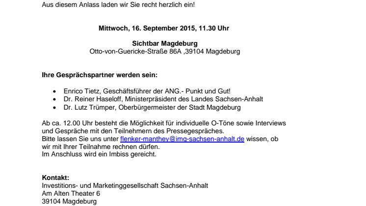 Bitte lassen Sie uns unter flenker-manthey@img-sachsen-anhalt.de wissen, ob wir mit Ihrer Teilnahme rechnen dürfen.