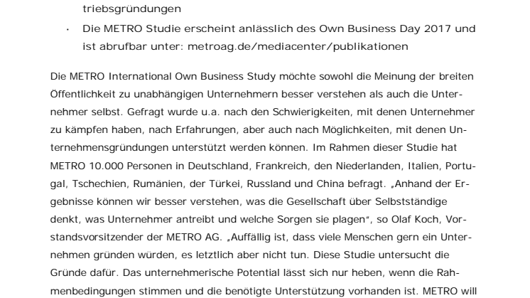 - Die METRO Studie erscheint anlässlich des Own Business Day 2017 und ist abrufbar unter: metroag.de/mediacenter/publikationen