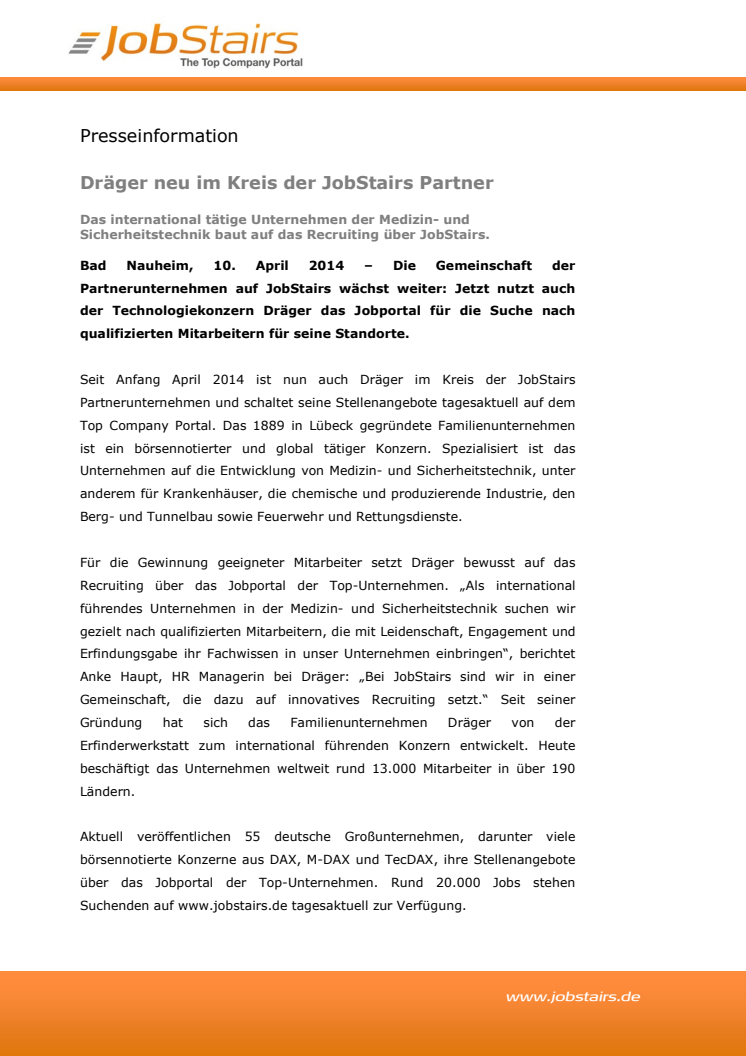 Das international tätige Unternehmen der Medizin- und Sicherheitstechnik baut auf das Recruiting über JobStairs.