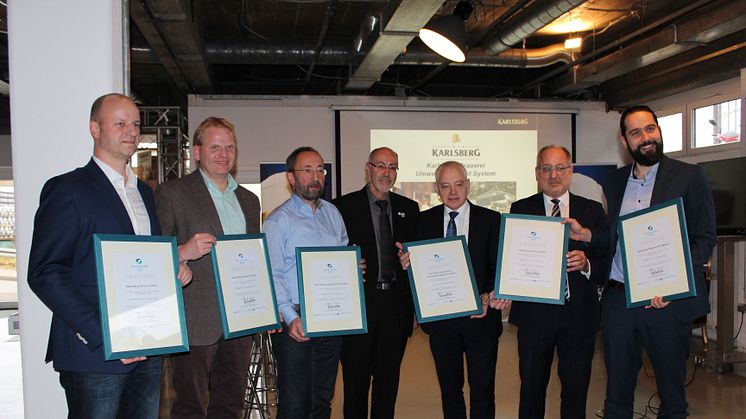 Umweltstaatssekretär Roland Krämer überreichte im Rahmen einer kleinen Feierstunde im Bierkeller der Homburger Brauerei die Teilnehmerurkunde an den Generalbevollmächtigten der Karlsberg Brauerei KG Weber, Christian Weber. Aufgenommen wurden an diesem Tag außerdem die Karlsberg-Gesellschaften Karlsberg Brauerei KG Weber, Karlsberg Holding GmbH, Karlsberg Service GmbH, Karlsberg Logistik Service GmbH und Karlsberg International Getränke GmbH.