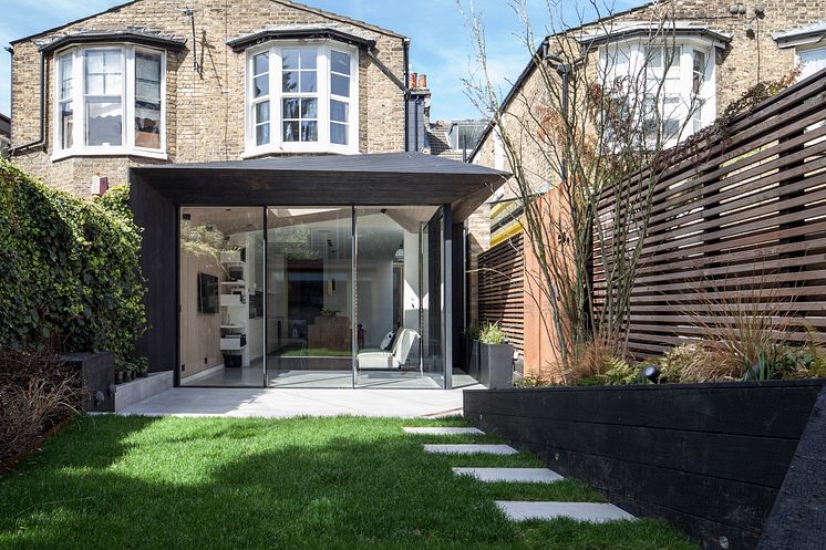 Für die Fassade und das Dach des Anbaus wählte er verkohltes, schwarzes Kebony von der englischen Firma Shou Sugi Ban. Dieses besonders dauerhafte und toll aussehende Holz für Aussenverkleidungen besticht in der Optik vor allem in der Kombination mit dem hier verwendeten Glas.