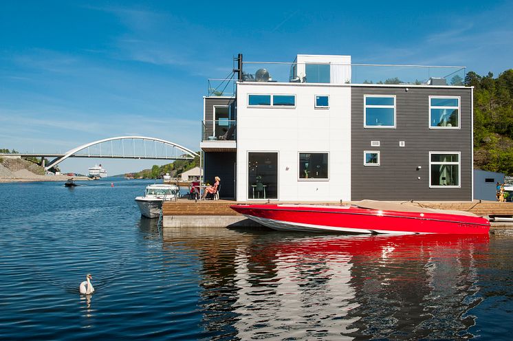 AquaVilla mit Sitz im schwedischen Marinstaden hat kürzlich sein größtes schwimmendes Haus fertiggestellt. Die einzigartige und bemerkenswerte „Sjövilla 210“ verkörpert eine ehrgeizige skandinavische Designkultur aus Materialien, die auch unter marinen Bedingungen höchsten Ansprüchen gerecht werden. Als Ergänzung des dynamischen Designansatzes von AquaVilla wurden alle verwendeten Hölzer, einschließlich für Außenwände, Pontondeck und Dachterrasse, von Kebony geliefert.