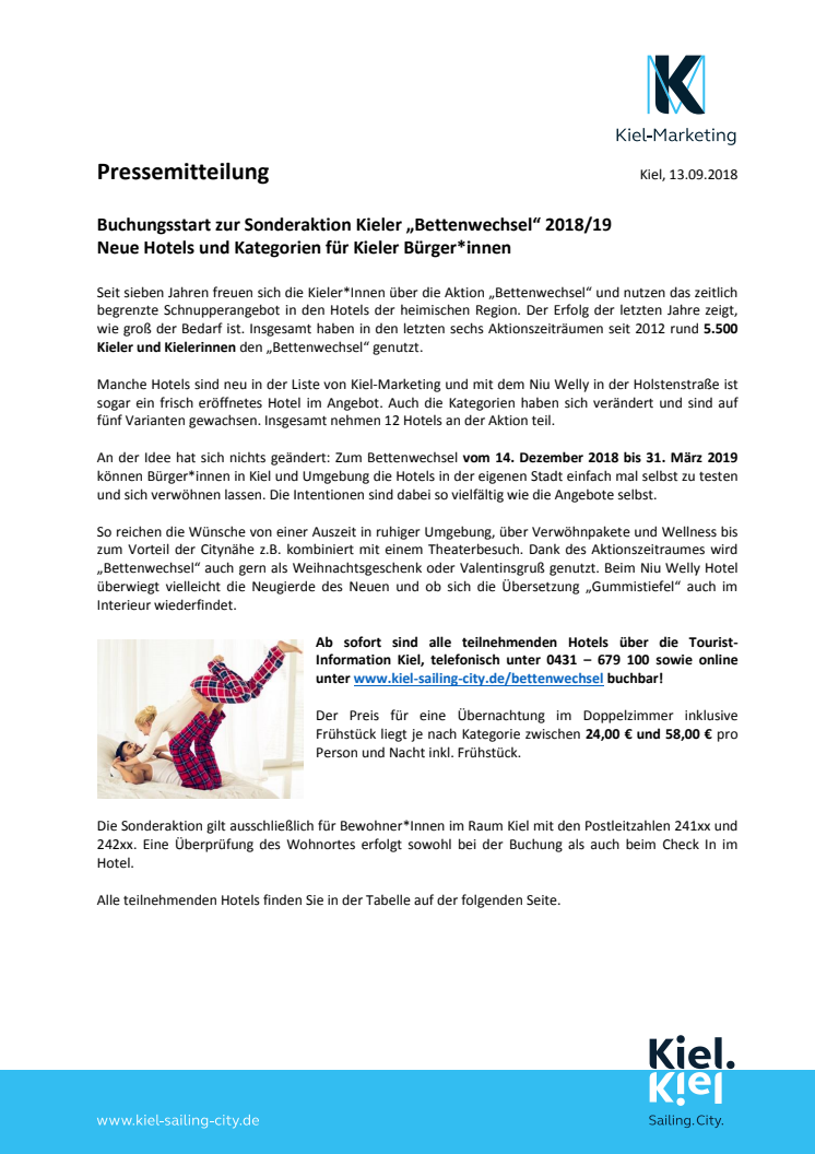 Bettenwechsel in Kiel mit neuen und altbewährten Hotels