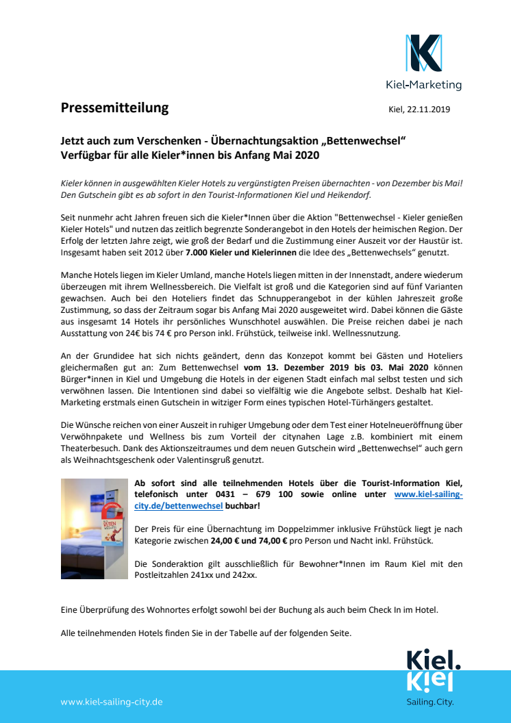 Kieler Bettenwechsel zum Verschenken - verwöhnen lassen zu Sonderkonditionen