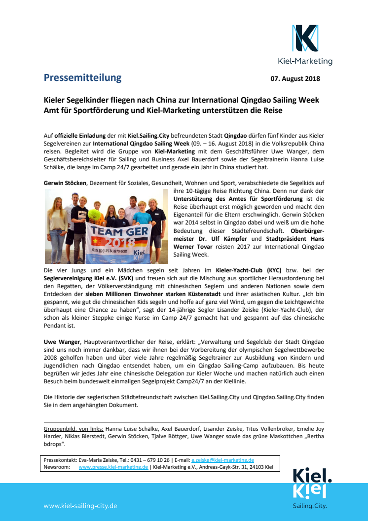 Kieler Segelkinder fahren nach China zur International Qingdao Sailing Week
