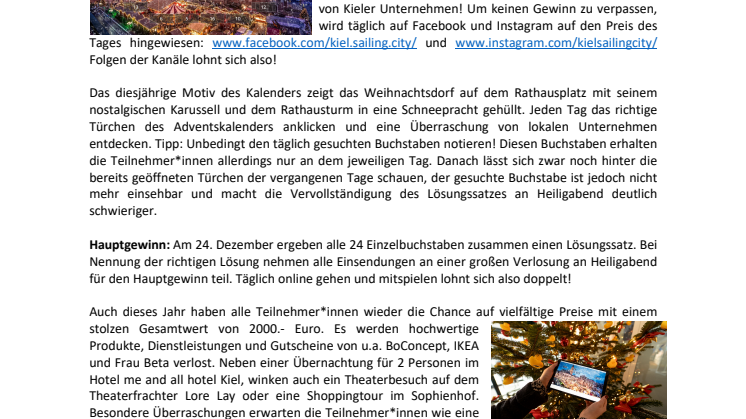 Adventskalender von Kiel.Sailing.City mit 24 Gewinnen lokaler Partner