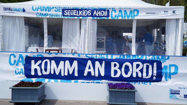 Neu in der 21. Saison des Camps sind nicht nur der geänderte Name „Segelcamp powered by Stadtwerke Kiel“ und die Website www.segelcamp-kiel.de. Der leicht veränderte Campaufbau verbessert den offenen und freien Blick von der Reventlouwiese über das Gelände und das Areal der Gastronomie bis weit hinaus auf das Treiben auf dem Wasser.