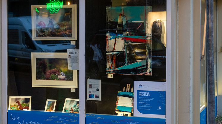 Wer aktuell an der ehemaligen Ladenfläche am Ziegelteich 2 vorbeigeht, den erwarten dort hell erleuchtete Schaufenster und farbenfrohe Kunstwerke lokaler Künstler*innen. Nach der Bewerbungsphase über Kiel-Marketing, in der zahlreiche Künstler*innen aus Kiel und Umgebung ihr Interesse bekundeten, startete am Montag, den 18. November 2021, die zweite Ausstellung vor Ort.
