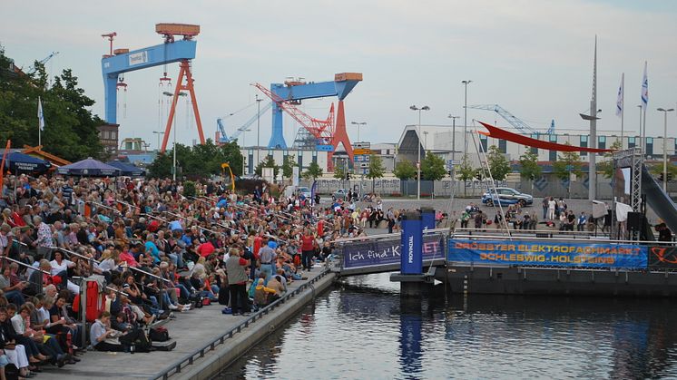 Auf der schwimmenden Bühne des Bootshafen Kiels findet ein vielfältiges Programm bestehend aus Live-Musik, Poetry-Slam und DJ-Sets statt. Für Kinder gibt es ein kostenloses Schnuppersegelangebot.
