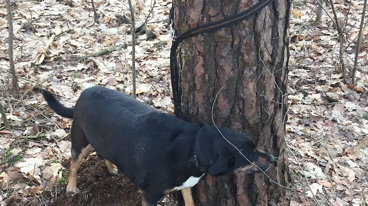 Einen offensichtlich ausgesetzten Hund haben Mitarbeiter des Barnimer Veterinäramtes am Nachmittag des 21. Januars 2020 in einem Waldstück in der Nähe des Brandenburgischen Viertels in Eberswalde aufgefunden. Das Tier war mit Halsband und Leine an einen Baum gebunden.