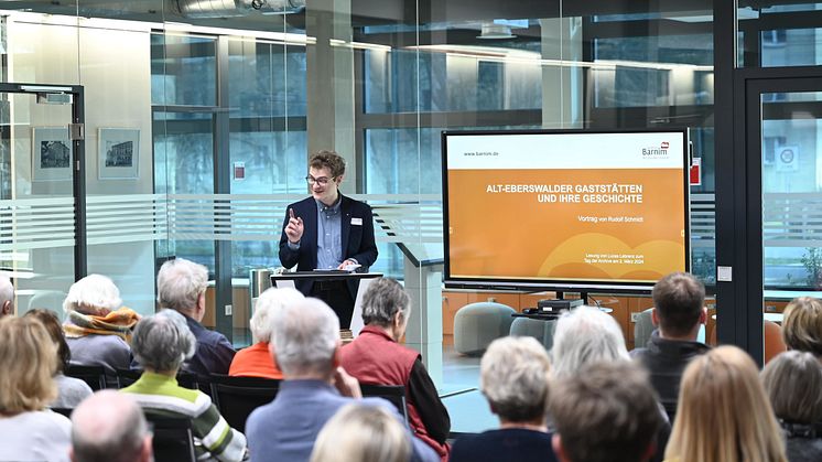 Im Kreisarchiv Barnim lauschten die Besucherinnen und Besucher Lucas Lebrenz bei seiner Lesung aus einem bereits 1936 vor dem Eberswalder Gastwirtsverein von Rudolf Schmidt gehaltenen Vortrag zum Thema "Alt-Eberswalder Gaststätten und ihre Geschichte". Dazu wurden nicht nur historische Aufnahmen der Lokalitäten gezeigt, sondern auch selbige geografisch in die Neuzeit verortet. Karin Baron, Ortschronisten aus Bredyn, referierte sehr anschaulich zur Geschichte der Gasthöfe in Trampe, Klobbicke und Tuchen. Zur Barnimer Backkultur beantwortete Bäckermeister Björn Wiese viele Fragen. Unter anderem die, ob der Spritzkuchen wirklich eine Erfindung des Eberswalder Bäckermeisters Gustav Zietemann ist.