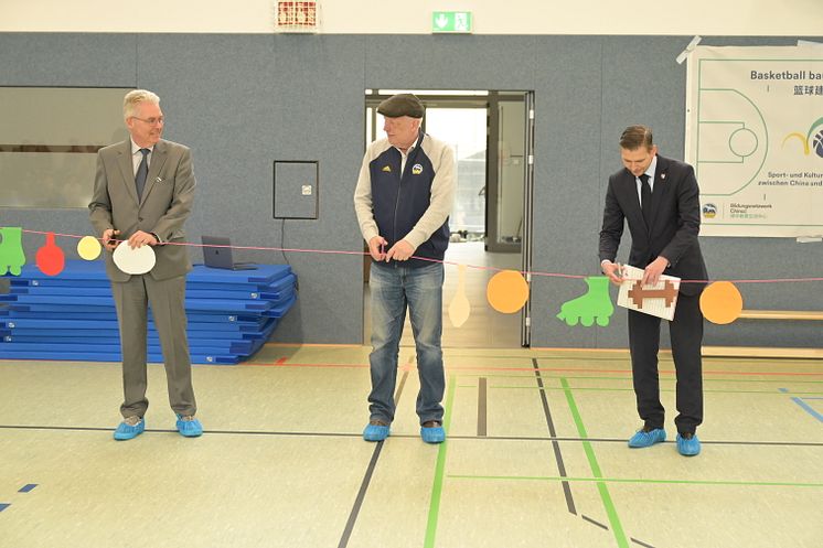 Zum Abschluss hatte Arndt noch eine Überraschung im Gepäck. Auf Initiative des bekennenden Basketball-Fans ist das Gymnasium Wandlitz seit Kurzem Teil von „Basketball baut Brücken“. Das Projekt des Sportvereins Alba Berlin und dem Bildungsnetzwerk China fördert den interkulturellen Austausch zwischen Schülerinnen und Schülern aus China und Deutschland. Im Rahmen von AGs werden Sprachkompetenzen und Basiswissen über China sowie Basketballkenntnisse vermittelt.