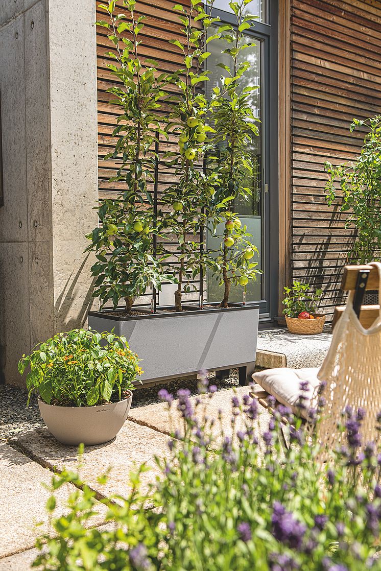 Bei der Auswahl der Pflanzen sind im Prinzip keine Grenzen gesetzt: Von Klassikern wie Tomaten, Himbeeren oder Basilikum bis hin zu ungewöhnlichen Sorten wie Edamame oder Pak Choi, für nahezu jede Pflanze gibt es das passende Gefäß von LECHUZA. (LECHUZA TRIO Stone 30 in steingrau, CUBETO 40 in sandbeige)