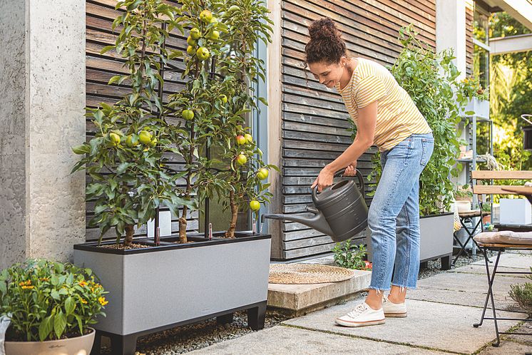bepflanzbaren Einsätzen an, das mit dem passenden Rankgitter für stabilen Halt
