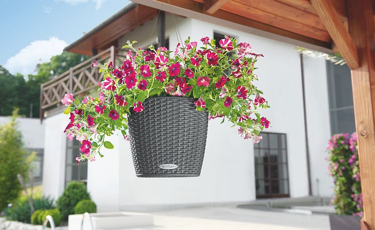 Auch in luftiger Höhe machen Pflanzen eine gute Figur mit NIDO – der Hängeampel von LECHUZA. ----- Weitere hochauflösende Bilddaten stellen wir Journalisten gerne auf Anfrage zur Verfügung: Bitte schreiben Sie uns eine E-Mail an pr@lechuza.com. Vielen Dank!