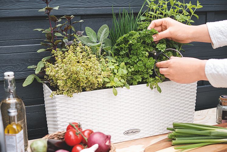 So sind Schnittlauch, Petersilie und Co. immer zur Hand und können ganz nach Bedarf geerntet werden. (LECHUZA BALCONERA Cottage 50 in weiß)