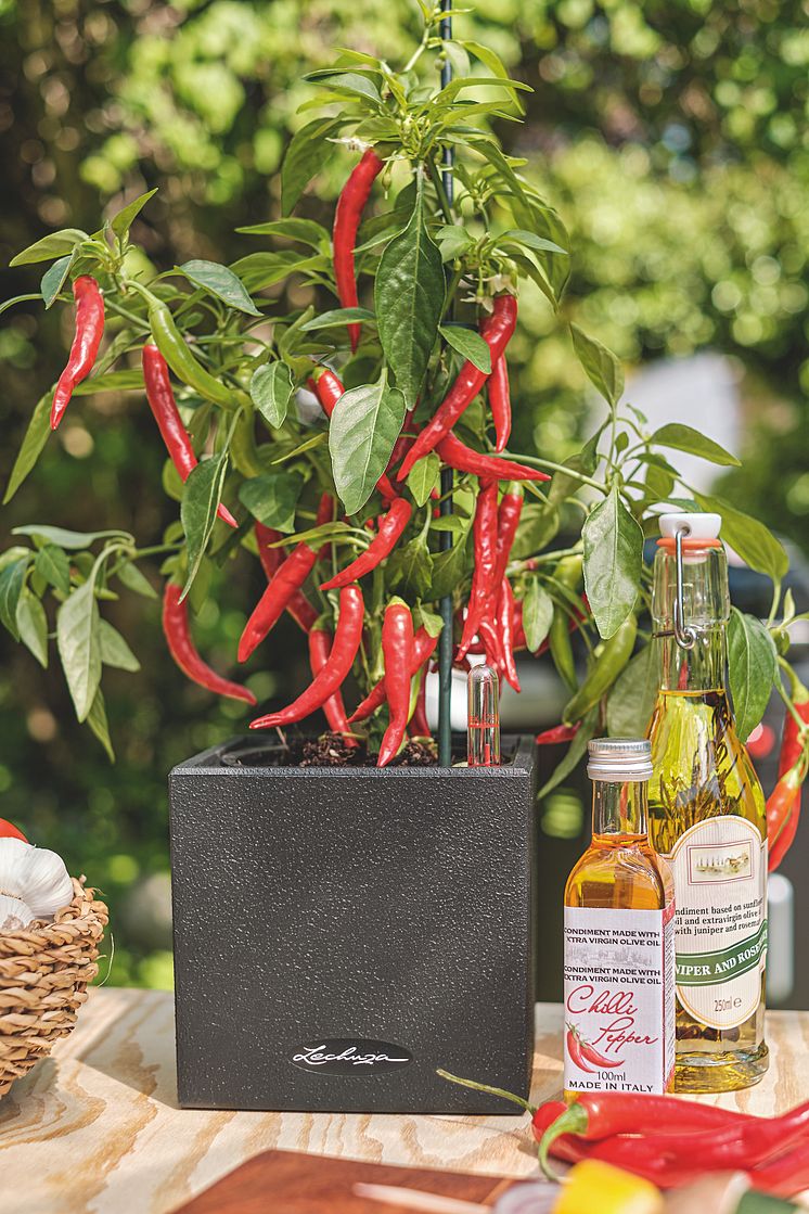 Die praktischen Pflanzgefäße von LECHUZA verfügen über ein integriertes Bewässerungssystem, das die Pflege auch an sonnigen Tagen übernimmt. (LECHUZA CANTO Stone 14 in graphitschwarz)