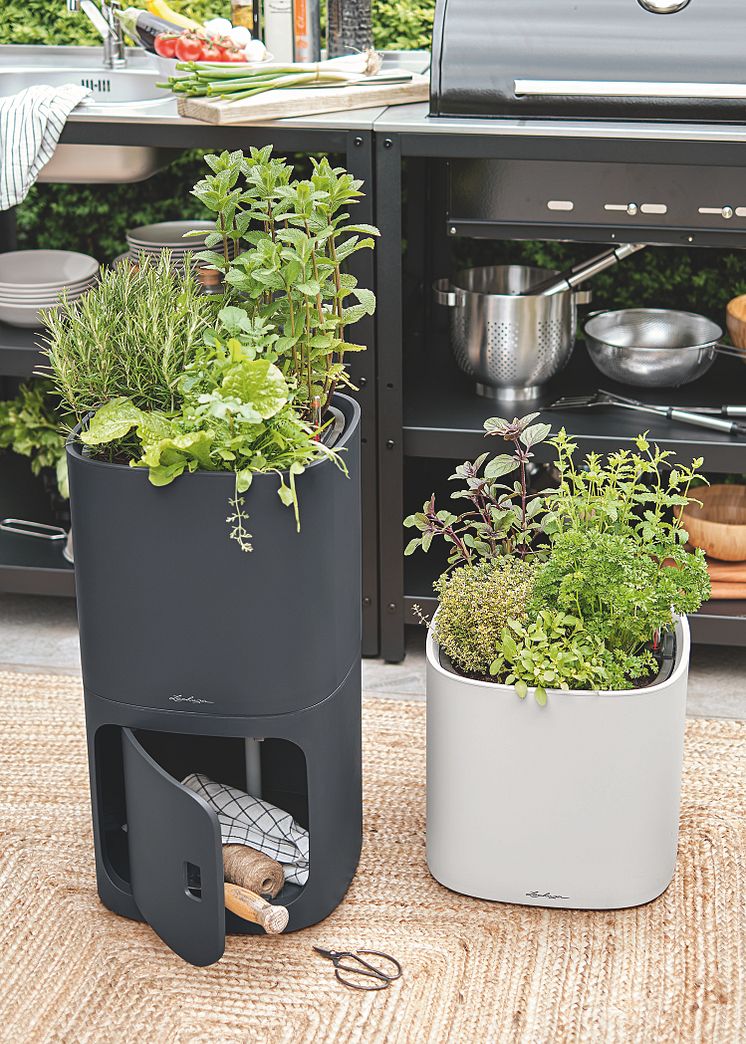 verstauen. (LECHUZA PILA Storage und Planter in schiefergrau, PILA Planter in lichtgrau)