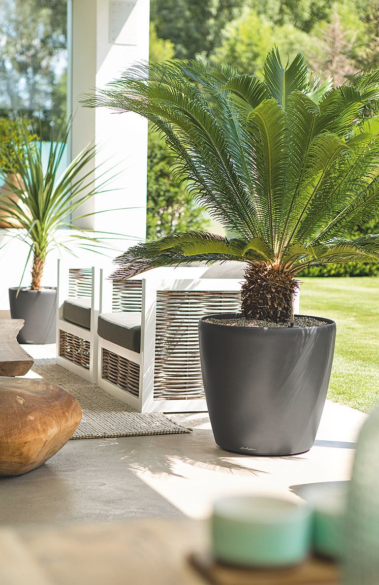 Entspannte Pflanzenpflege: Die praktischen Pflanzgefäße von LECHUZA verfügen über ein integriertes Bewässerungssystem, das die Pflege auch an sonnigen Tagen übernimmt. Die Pflanzen versorgen sich in den smarten Gefäßen über das Wasserreservoir mit der idealen Menge an Flüssigkeit und Nährstoffen, der Wasserstandsanzeiger gibt an, wann das Reservoir wieder aufgefüllt werden muss. Die UV-beständigen Gefäße sind aus hochwertigem Kunststoff gefertigt und leicht zu transportieren. In diesem grünen Ambiente bereitet das schöne Wetter besonders viel Freude und dank LECHUZA nimmt die Pflanzenpflege auch an heißen Tagen nicht überhand. Einfach zurücklehnen und den Sommer genießen!