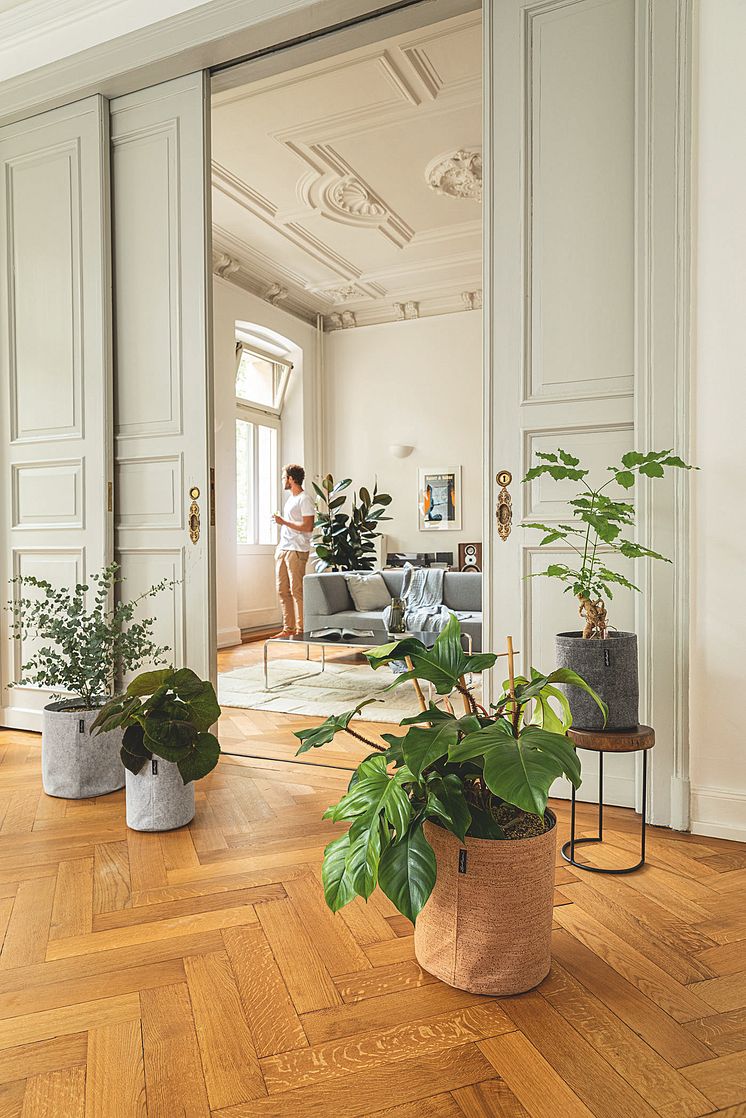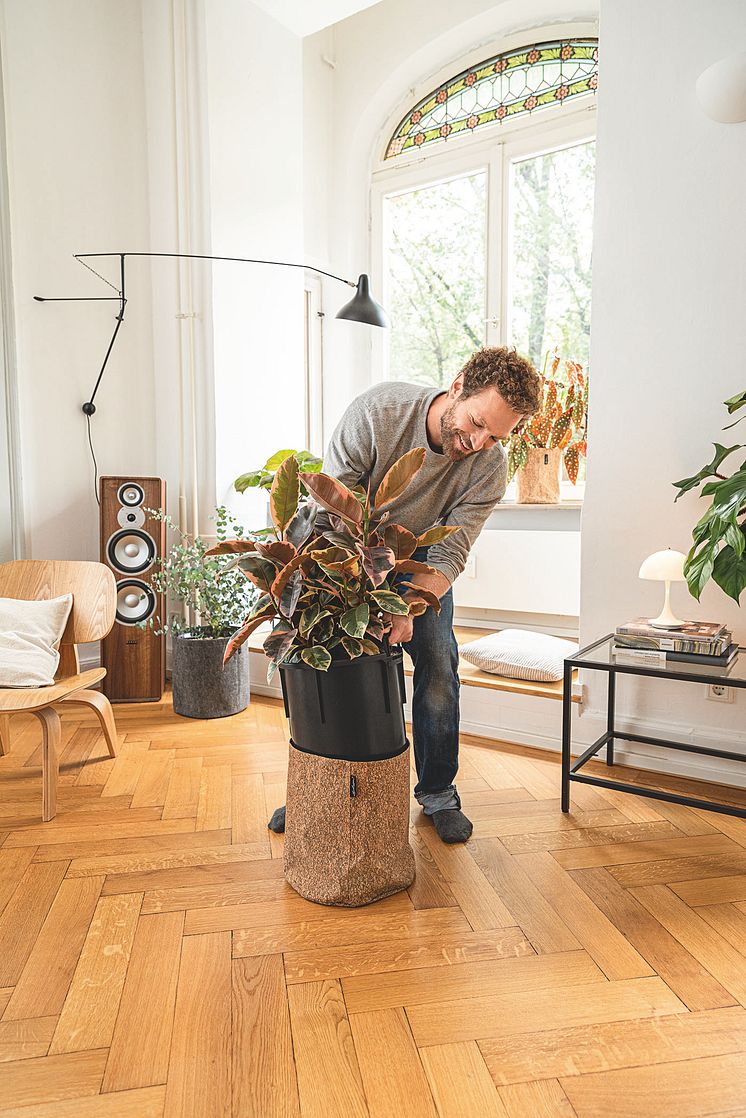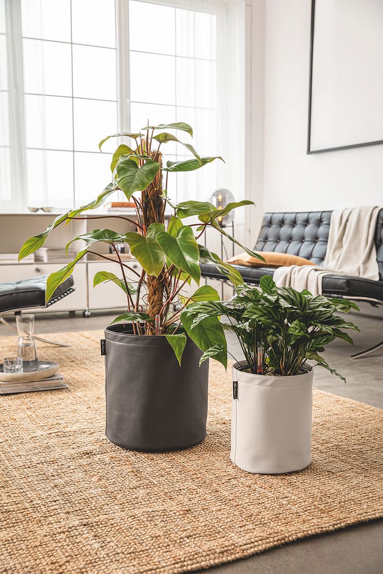 Wohnmaterialien, Accessoires und Textilien aus Filz, Kork und Kunstleder finden sich in allen angesagten Einrichtungsstilen wieder und verbreiten mit ihrer angenehmen Haptik und der natürlichen Optik eine wohnliche und warme Stimmung. Mit den unterschiedlichen TRENDCOVER-Bezügen spiegeln sich die beliebten naturnahen Oberflächen auch bei den Pflanzgefäßen wider und sorgen dadurch für noch mehr Gemütlichkeit zuhause. Die geradlinigen Gefäße mit den unterschiedlichen Styles fügen sich harmonisch in jede Umgebung ein und inszenieren die Zimmerpflanze als modernen Blickfang. Großblättrige Grünpflanzen wie Monstera, Calathea oder Philodendron passen optimal in den Einsatz mit bis zu 5,5 Litern Pflanzvolumen und bringen Farbe und Lebendigkeit mit ins Spiel.