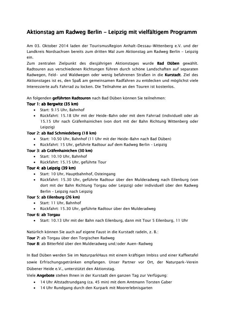 Aktionstag am Radweg Berlin - Leipzig am 03. Oktober 2014