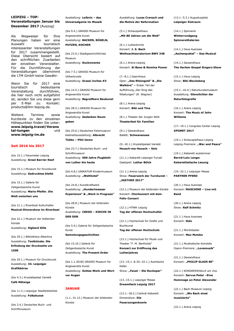 LEIPZIG - 500 TOP-Veranstaltungen 2017 - Kurzübersicht