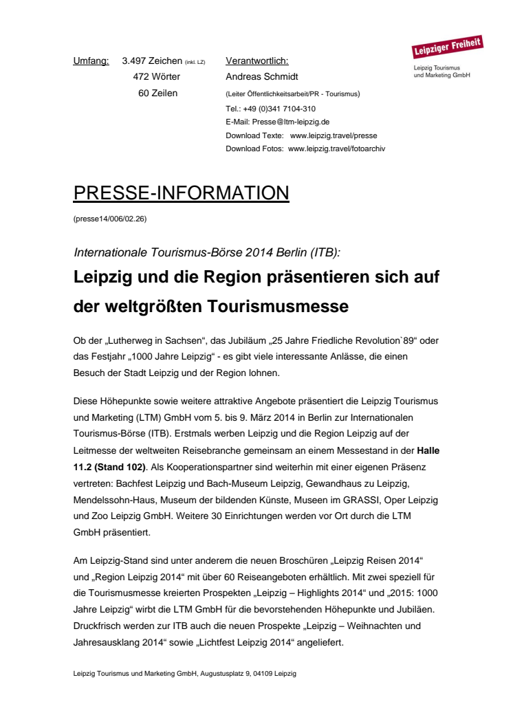 Leipzig und die Region Leipzig präsentierten sich erfolgreich auf der weltgrößten Tourismusmesse ITB 2014