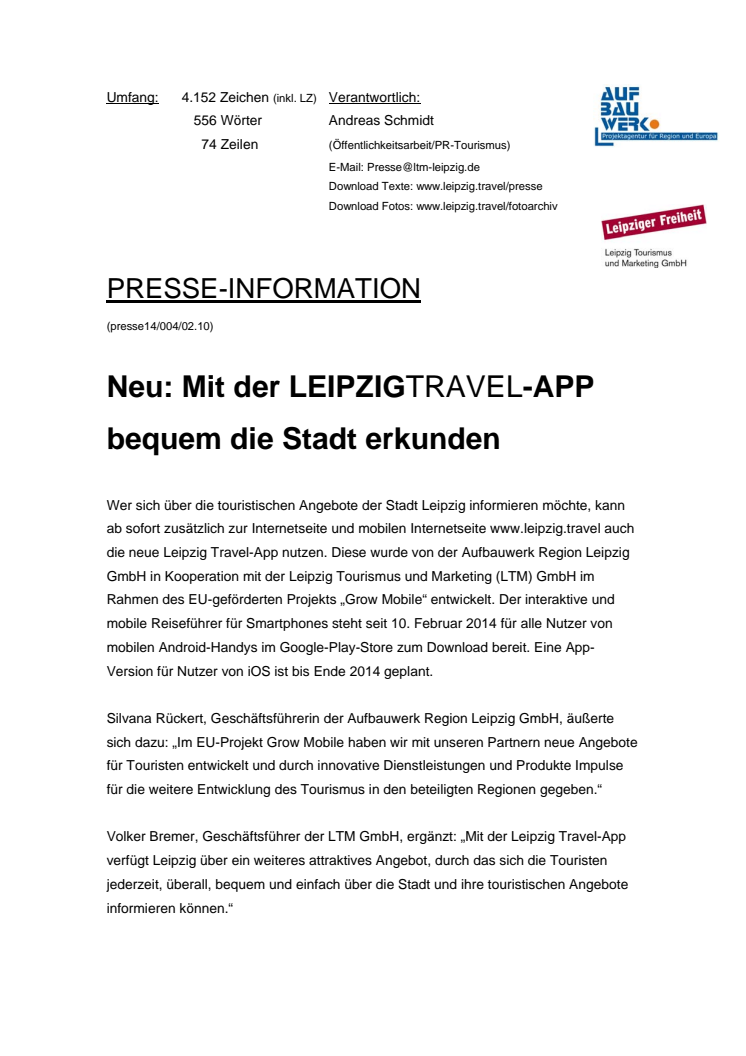 die neue Leipzig Travel-App nutzen. Diese wurde von der Aufbauwerk Region Leipzig
