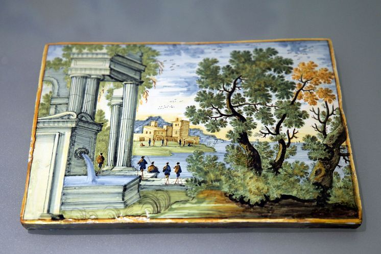 Ausstellung "DELFT PORCELAIN. Europäische Fayencen" - Drei Bildplatten (Castelli, 1. Hälfte 18. Jh)