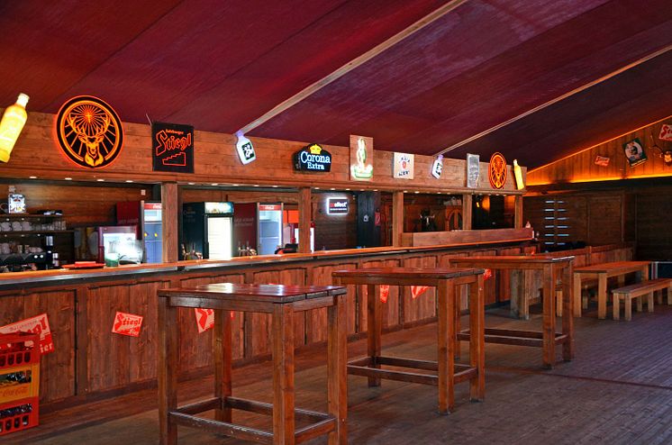 Bar im hölzernen Aprè-Ski-Partyhaus