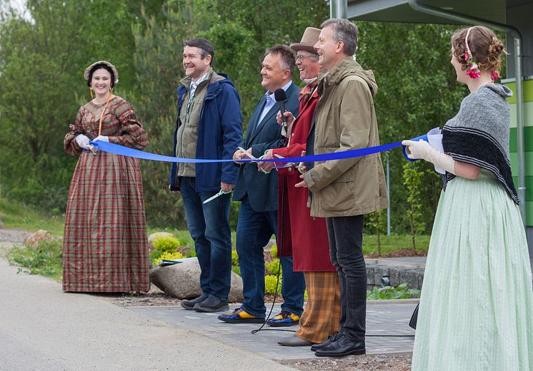 (v.l.): Iris Zwiener (Strandverein), Christian Mittag (Architekt der Servicestation), Rayk Bergner (OBM der Stadt Schkeuditz), Christoph Zwiener (Vorsitzender des Strandvereins), Dr. Robert Böhnke (LMBV), Brit von Ryssel (Strandverein)