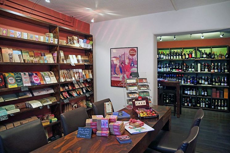 Blick in das Schokoladenfachgeschäft "Wein & Schokolade"