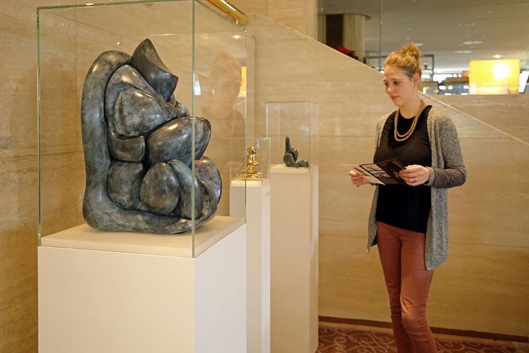 Blick in die Ausstellung "Aus dem Schutzraum der Heimlichkeit" mit Plastiken von Horst Meier im Leipziger Hotel The Westin