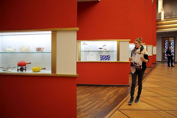 Blick in die Ausstellung "Backen, Bügeln, Putzen, Kochen - Das bisschen Haushalt!" im GRASSI Museum für Angewandte Kunst Leipzig