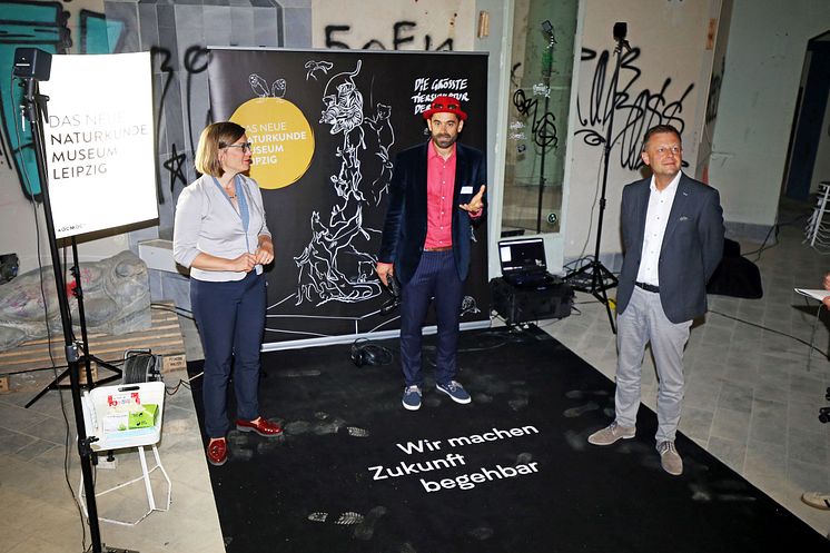 Bowlingtreff Leipzig - v.l.: Dr. Skadi Jennike (Kulturbügermeisterin), Dr. Ronny Maik Leder (Naturkundemuseum), Torsten Bonew (Finanzbürgermeister) - Foto: Andreas Schmidt