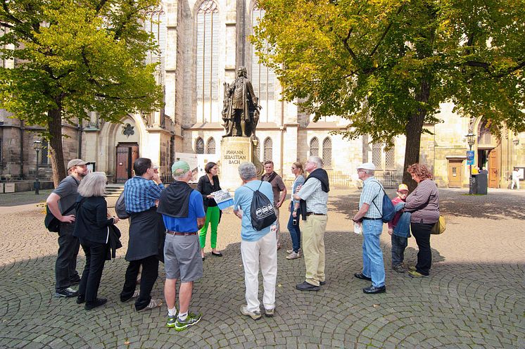 Das neue Bach-Denkmal vor der Thomaskirche in Leipzig ist eine Station bei den Bachrundgängen 2018 © Leipzig Erleben