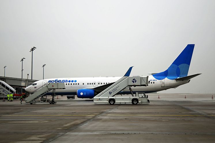 Der Erstflug der Pobeda landete am 16. April um 14.39 Uhr auf dem Rollfeld des Flughafens Leipzig/Halle