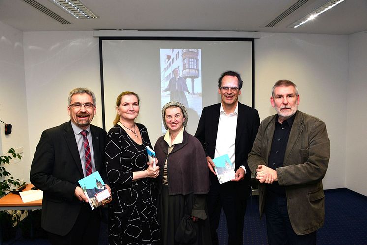 Die Autoren Marlis Heinz (2.v.l.) und Volkmar Heinz (r.) bei der Buchvorstellung