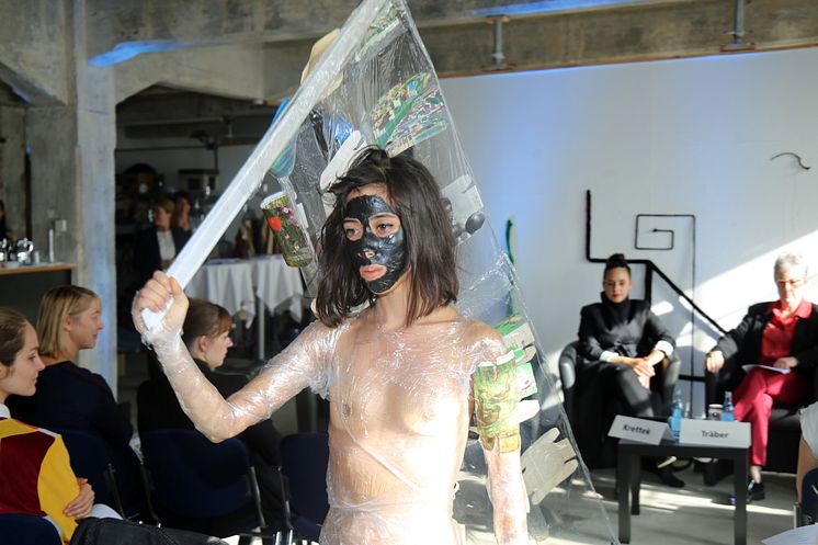 Die Künstlerin Natacha Martins in einem selbst entworfenen Outfit